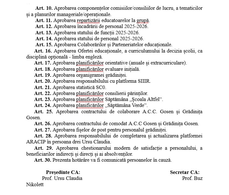 Plan managerial Gosen 2025-2026